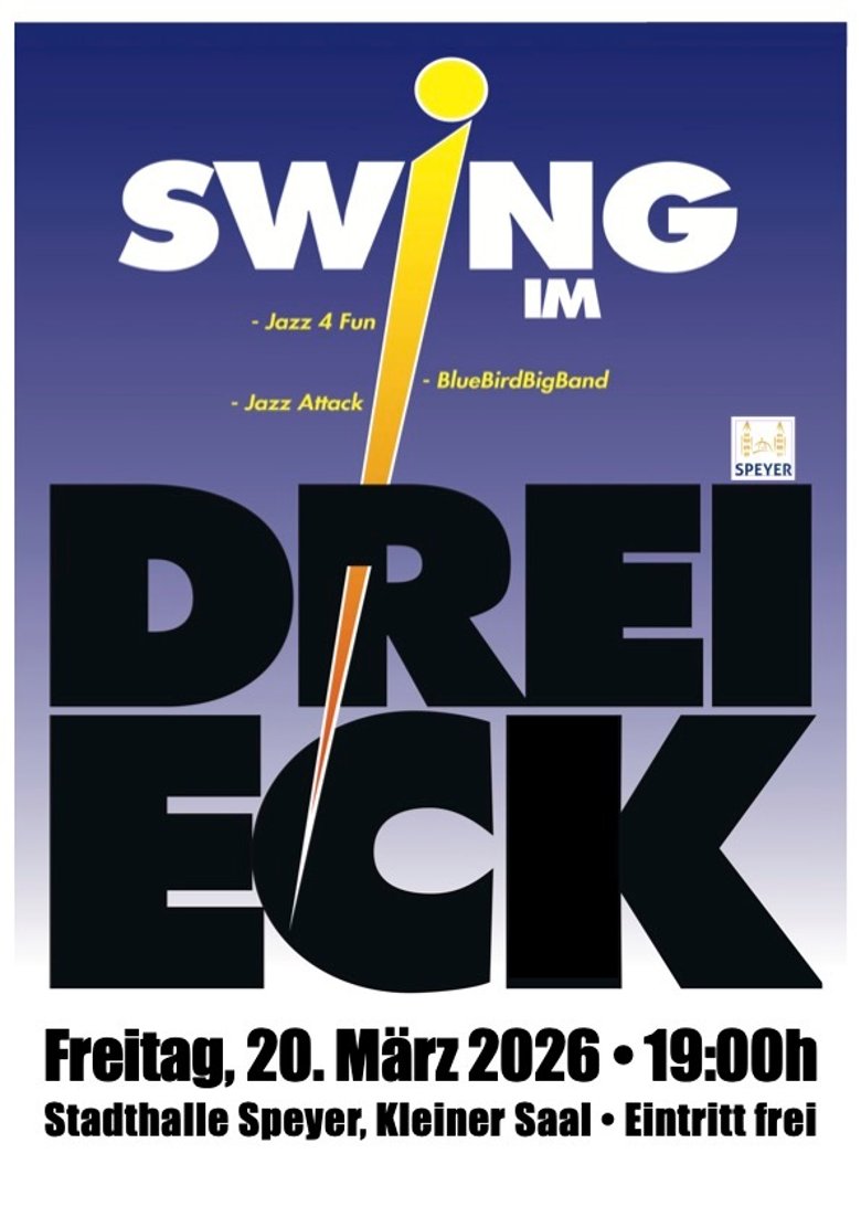 Das bereits zur Tradition gewordene Bigband Treffen Swing im Dreieck findet in diesem Jahr wieder einmal im Kleinen Saal der Stadthalle in Speyer statt. Gemeinsam bieten die drei führenden Musikschul-BigBands der Region anspruchsvolle und vor allem abwechslungsreiche BigBand Literatur. Der Rahmen spannt sich von Swing über Blues und Latin bis hin zu modernen Rock- und Funksounds. Jedes Jahr aufs Neue beeindruckt bei allen drei Bands das hohe musikalische Niveau und die Spielfreude der einzelnen Musiker.