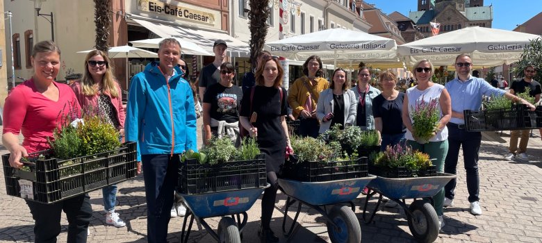 „Mir war es ein persönliches Anliegen, mit dieser kleinen Blumenspende einen Beitrag zur Verschönerung unserer Innenstadt zu leisten. Ich hoffe, dass die bunten Farbtupfer nicht nur Insekten anziehen, sondern auch die bummelnden Menschen auf der Maximilianstraße erfreuen“, äußert sich Oberbürgermeisterin Stefanie Seiler.