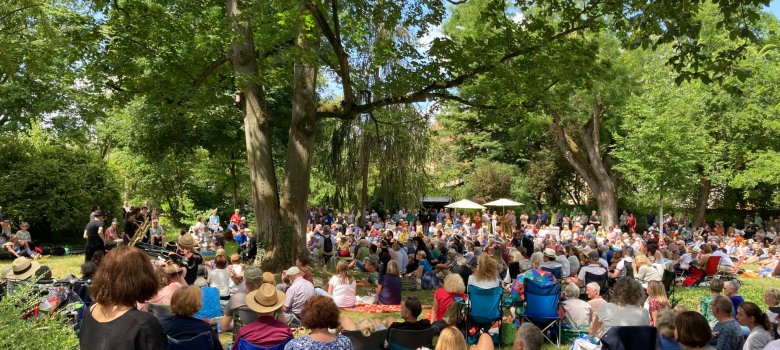 Zum Auftakt kommt am Sonntag, 20. Juli, um 11 Uhr das DVD-Trio in den Adenauerpark, bestehend aus Erwin Ditzner (Schlagzeug), Bernhard Vanecek (Posaune) und Paata Demurishvili (Piano, Bass). Das musikalische Buffet, das die drei Herren auffahren, besteht nicht nur aus swingenden Jazz-Standards und feurigen Latin-Rhythmen. Auch Klassik-Liebhaber*innen wird die eine oder andere Melodie bekannt vorkommen.
